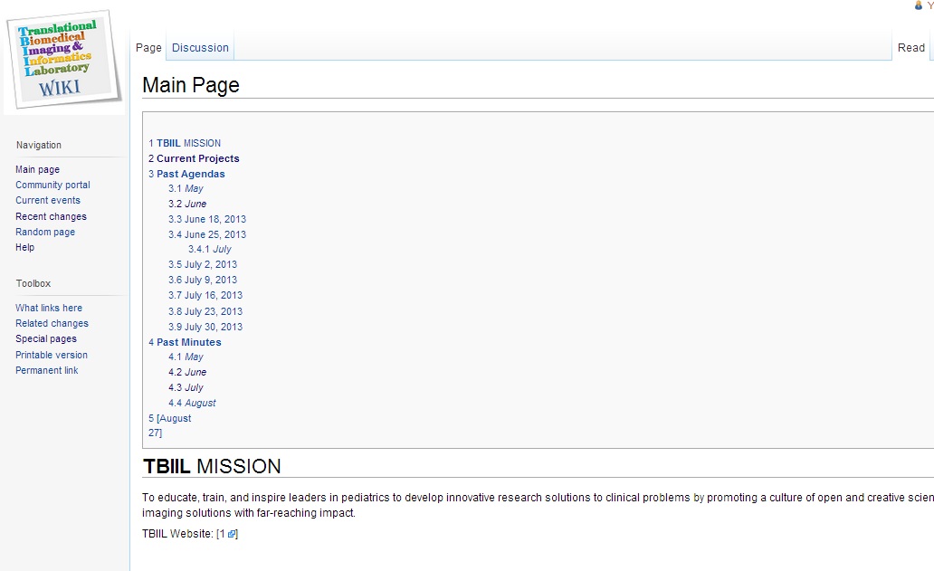 A wiki media is provided for TBII-LAB's update of Lab information. Each LAB member can contribute to the content, and login are required for wiki read and write.